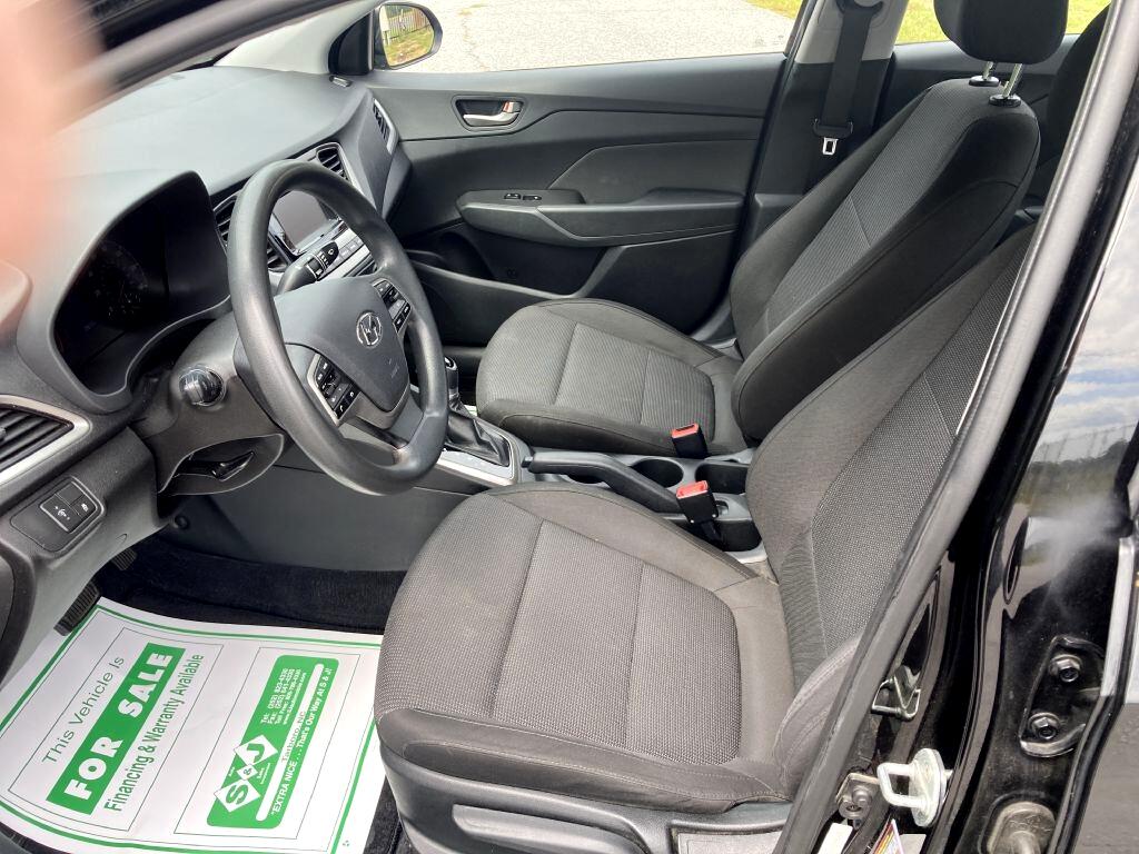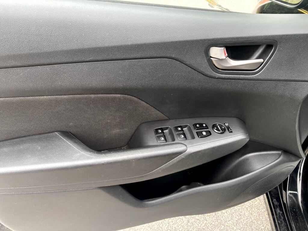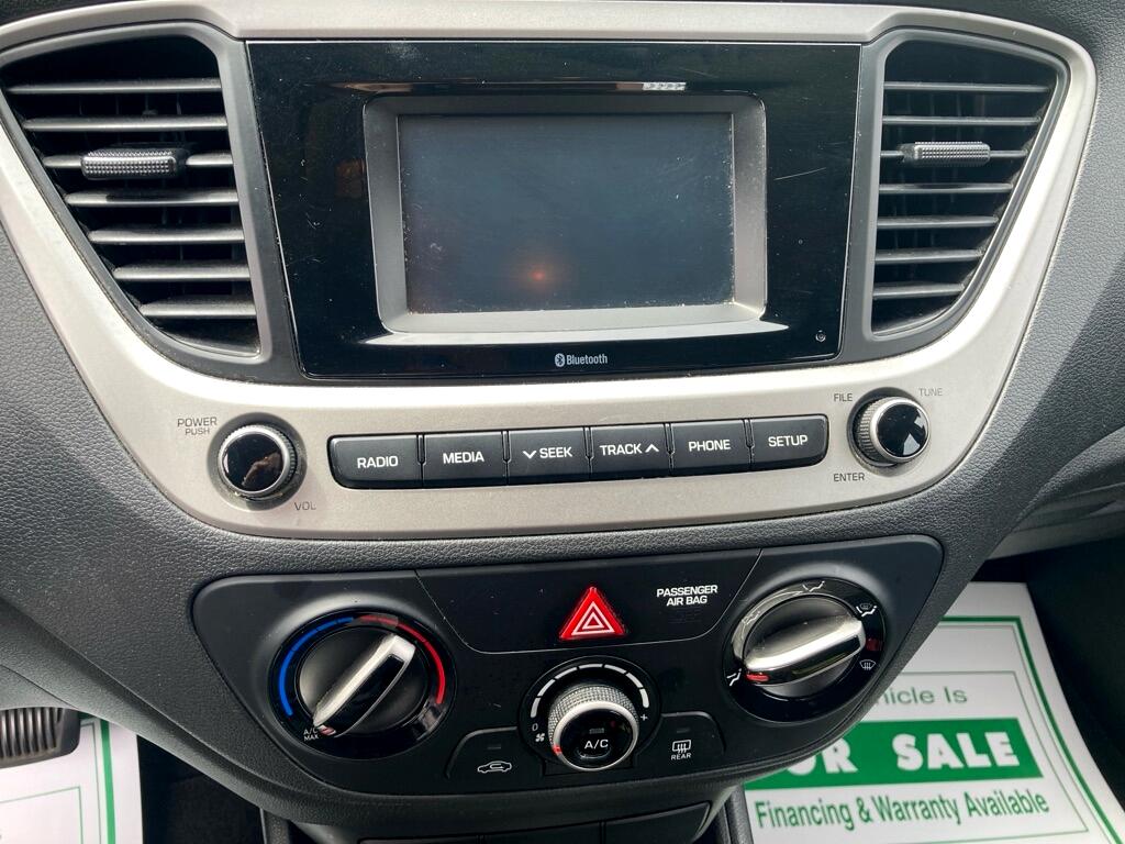 Hop into this sleek 2019 Hyundai Accent and get ready for a fun and efficient ride! With its compact size and fuel-efficient engine, this car is perfect for zipping around town or taking a road trip. The stylish black exterior is complemented by body-colored accents and halogen headlamps that light up the night. Inside, you'll find a comfortable cabin with room for five and a spacious trunk for all your gear. The plush cloth seats offer both the driver and passengers a cozy place to relax, while the cruise control and air conditioning keep everyone comfortable. Safety is a top priority with front and side airbags, as well as a back-up camera for easy maneuvering. The 1 LCD monitor in the front allows for easy viewing of your favorite tunes, streamed through the audio system. Plus, with the available Carfax report, you can drive with peace of mind knowing this Hyundai Accent has been well taken care of. Don't wait, come test drive this fantastic vehicle today!